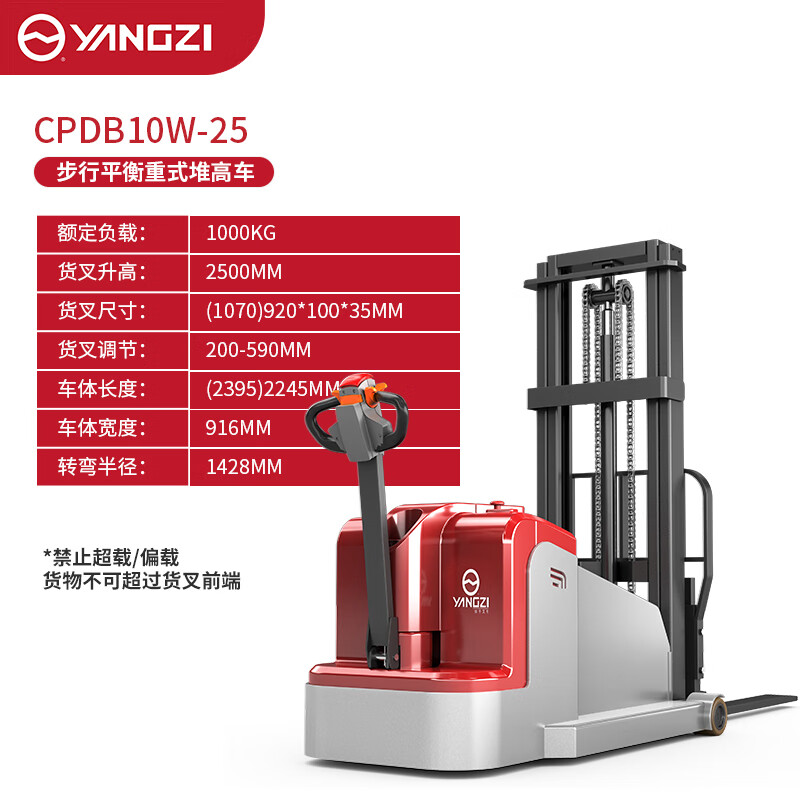 揚(yáng)子電動(dòng)叉車平衡重堆高車步行式無(wú)腿堆垛車CPDB10W-25